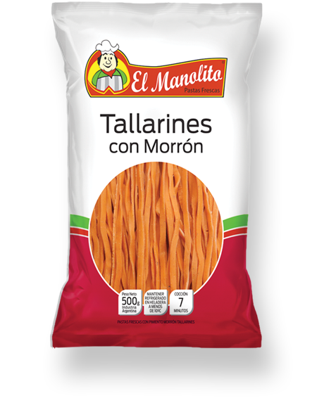 Semolín, agua, pimiento morrón deshidratado. Conservadores: propionato de calcio (INS 282), ácido sórbico (INS200). CONTIENE TRIGO. ELABORADO EN LÍNEAS QUE PROCESAN HUEVO, TRIGO Y LÁCTEOS.
